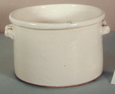 eigenschap / beschrijving: Cilindervormige bak met halfronde verdikte rand; twee 3-vormige oortjes; ongedecoreerd; (Nederlands) / bron