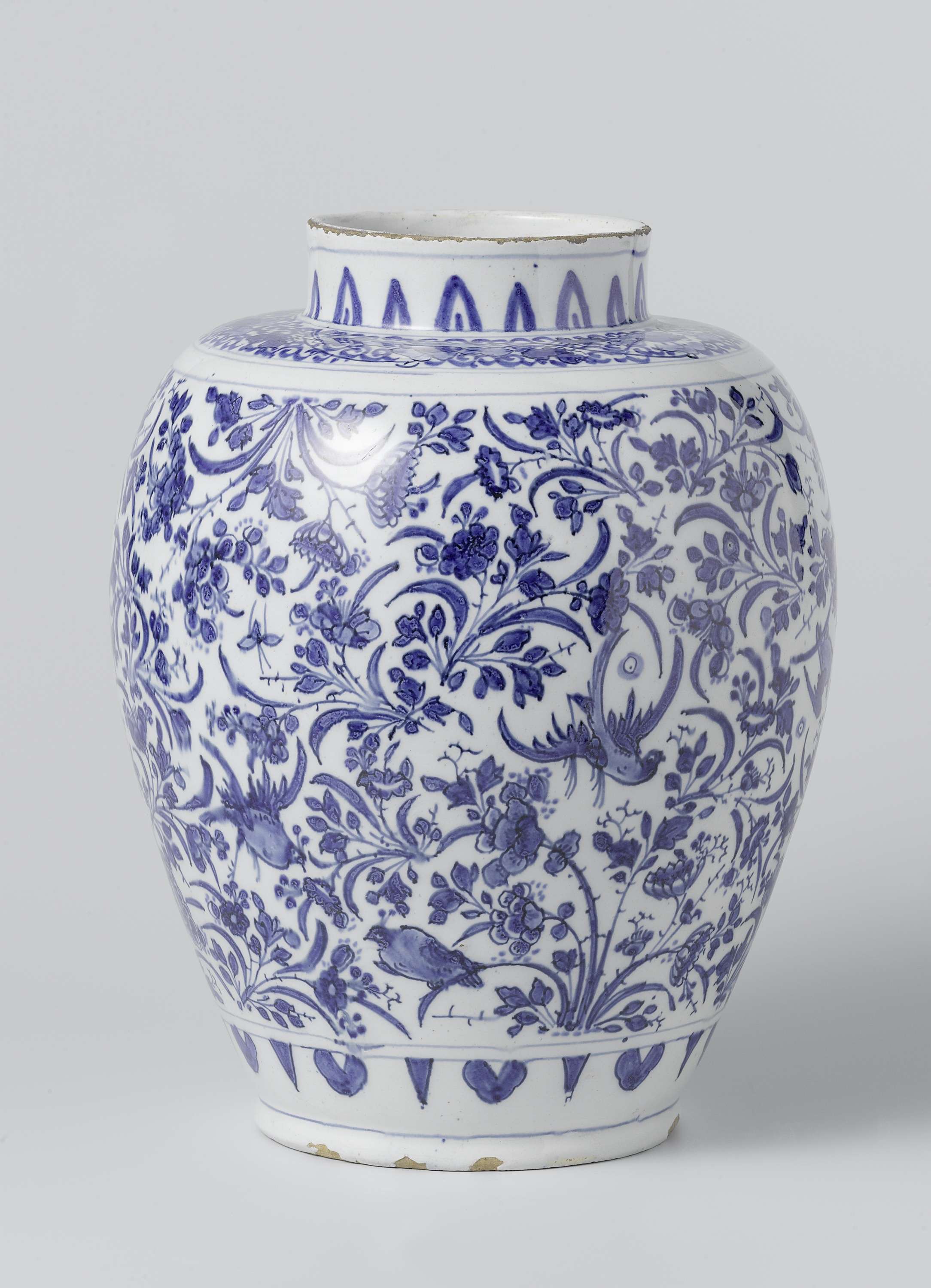 Pot (zonder deksel) van faience met strooi bloemdecor (Nederlands)