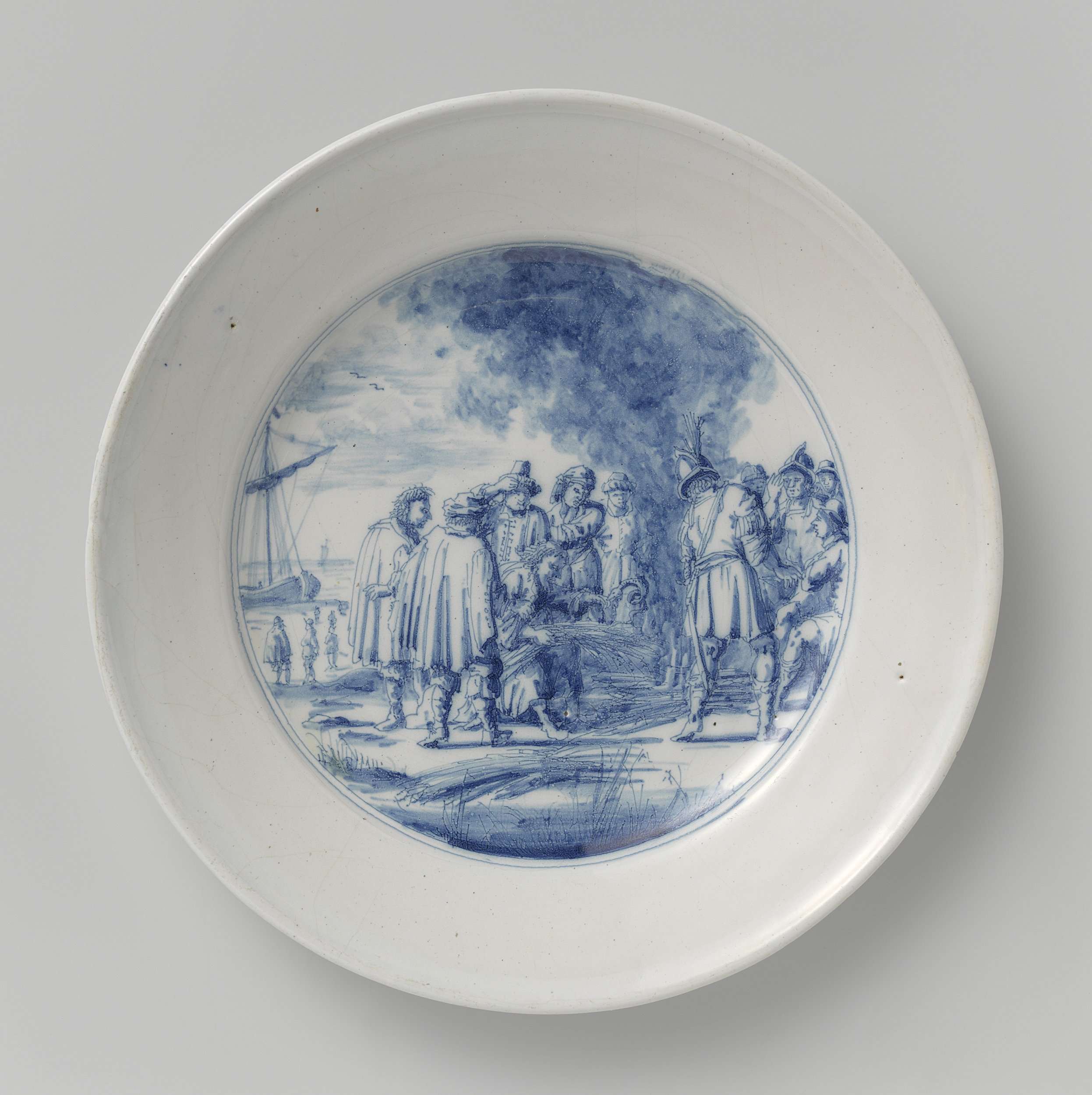 Bord van faïence, het plat beschilderd met Paulus op Malta (Nederlands)
