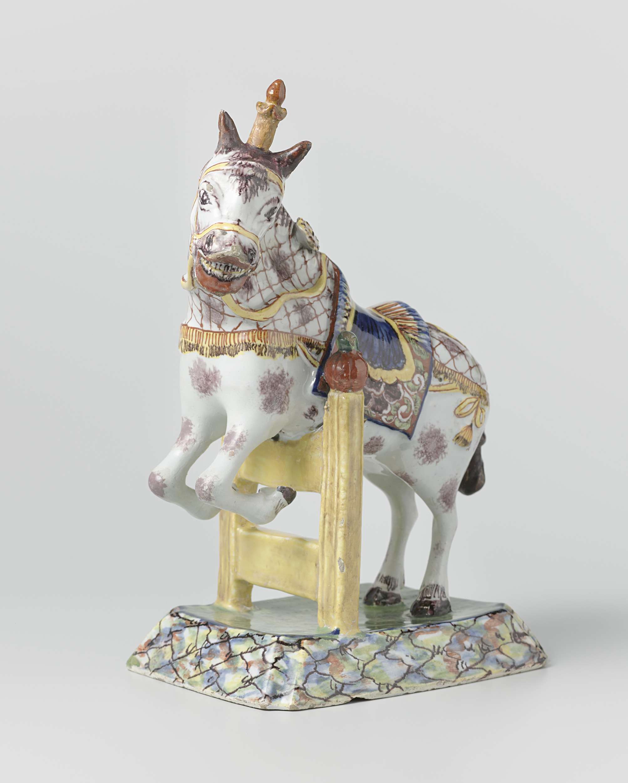 | Nederlands | Springend paard van veelkleurig beschilderde faïence |