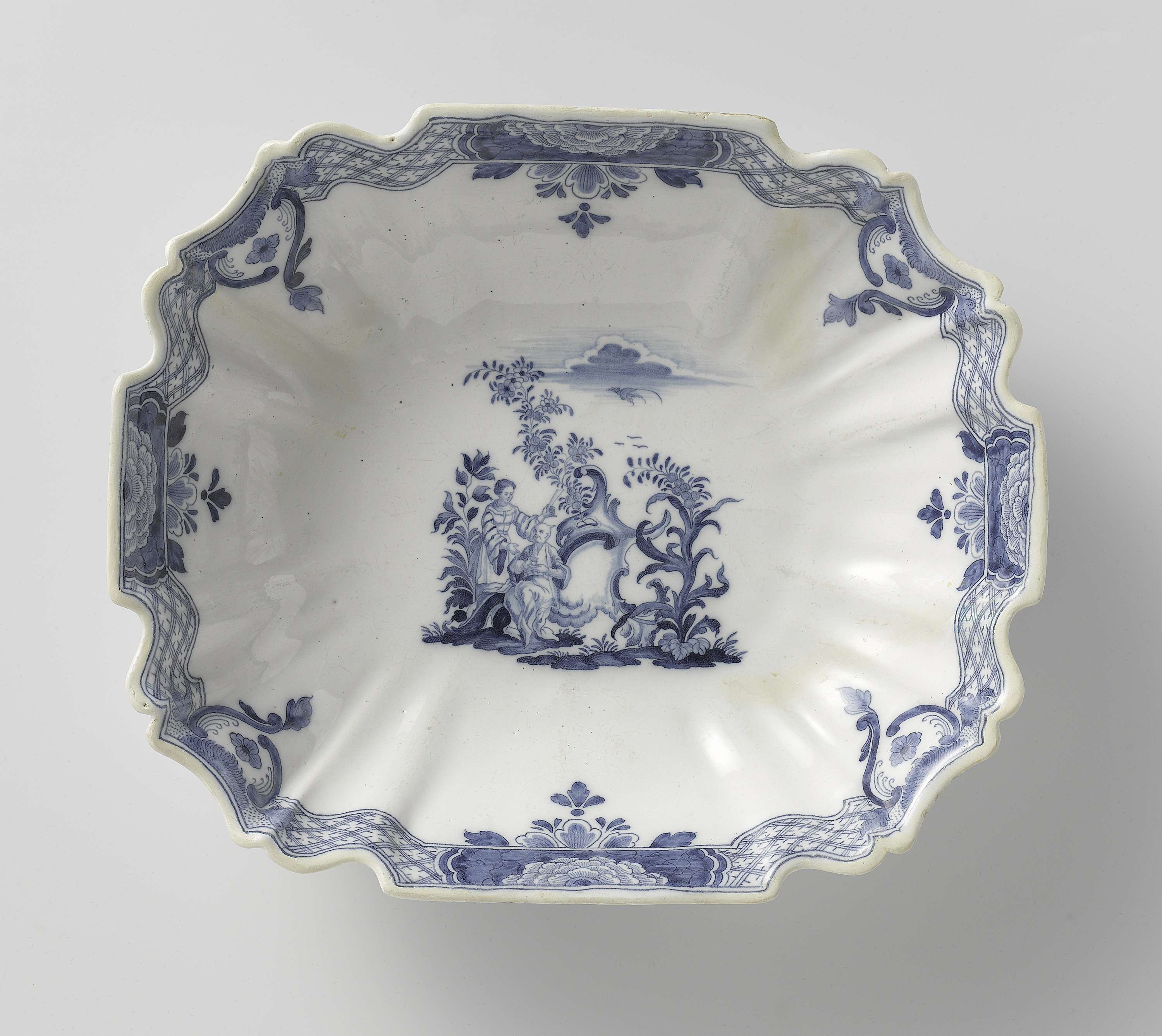 | Nederlands | Slakom met op het plat een Chinees paar in een prieel |