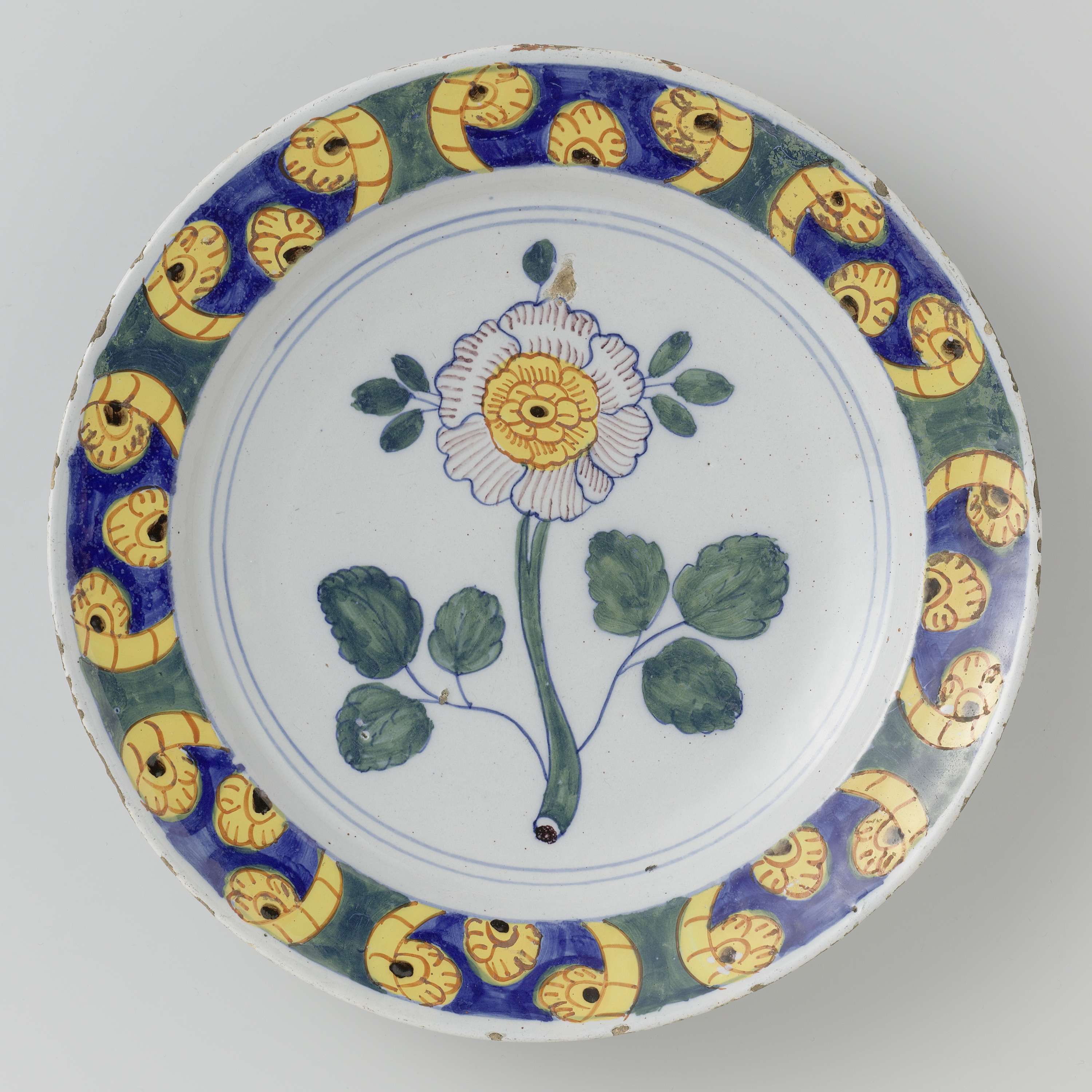| Nederlands | Schotel van veelkleurig beschilderde faïence |