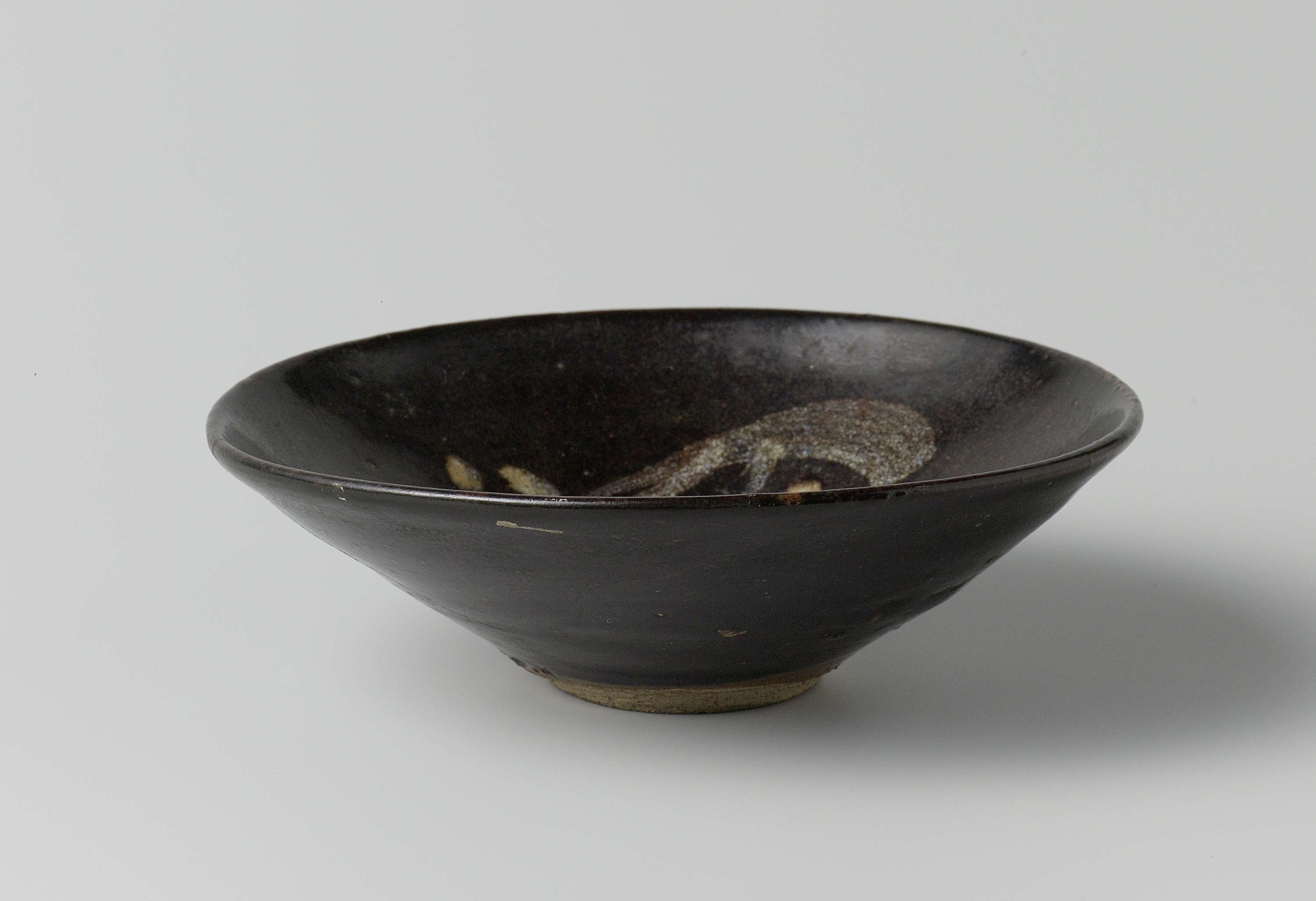 Theekom van steengoed, bedekt met een bruin glazuur. Op de bodem een uitgespaarde bloemtak (prunus). Henan.||China||http://hdl.handle.net/10934/RM0001.COLLECT.1139