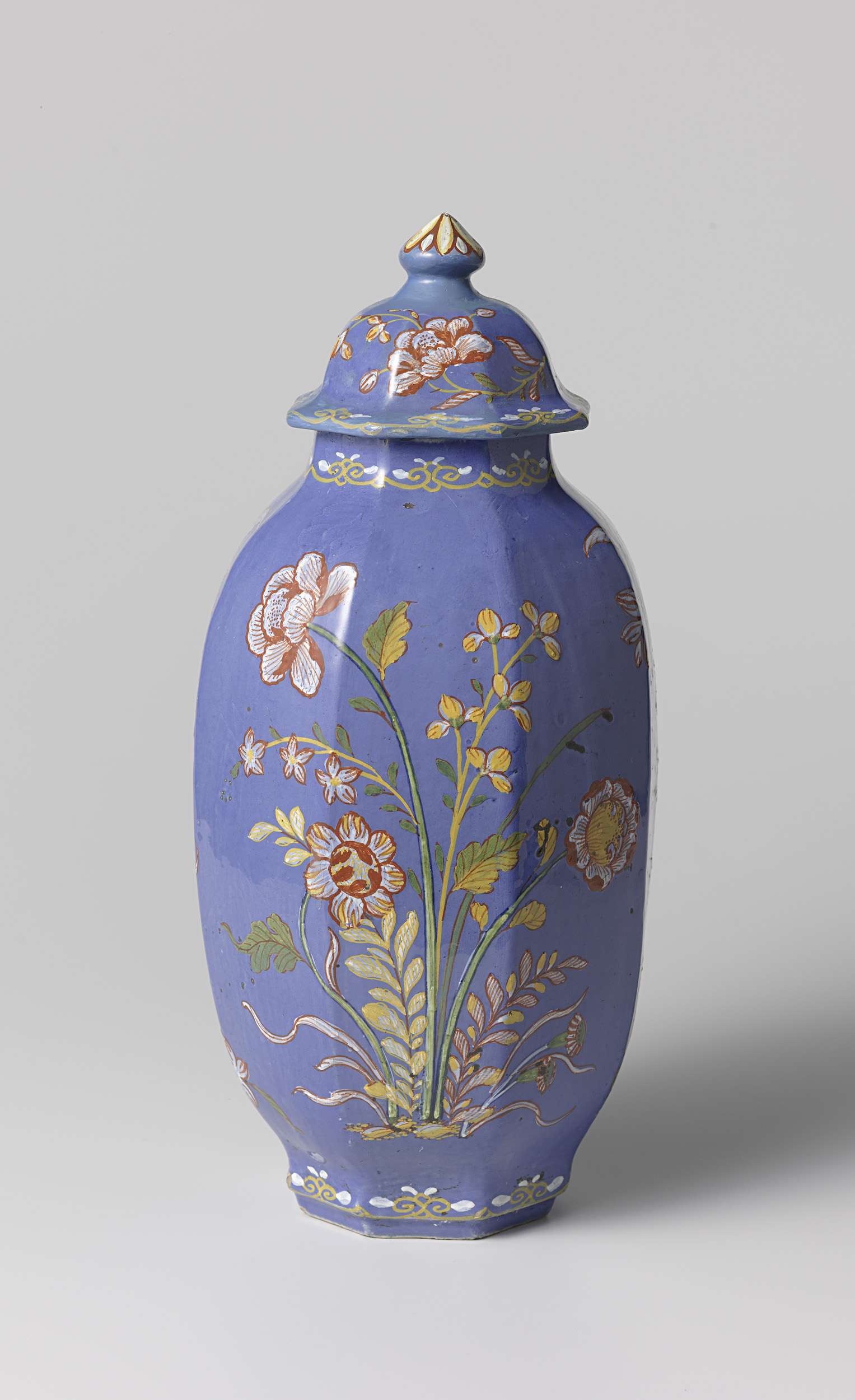| Nederlands | Pot met deksel van veelkleurig beschilderde faïence |