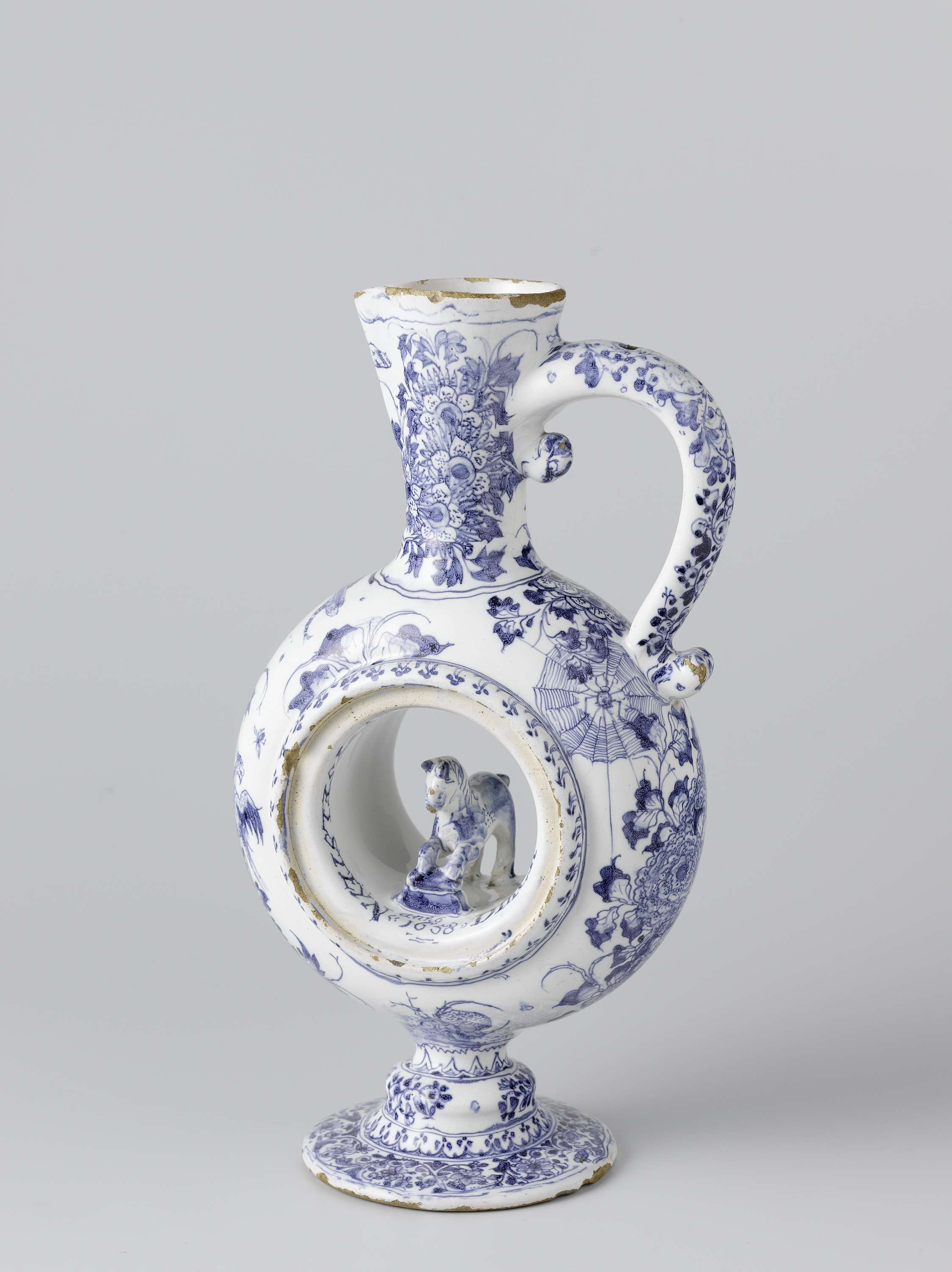Kan van faïence met holle buik, waarin een geboetseerd paard. In de holte het opschrift: Dirck Janse van Yselsteyn Anno 1658. (Nederlands)