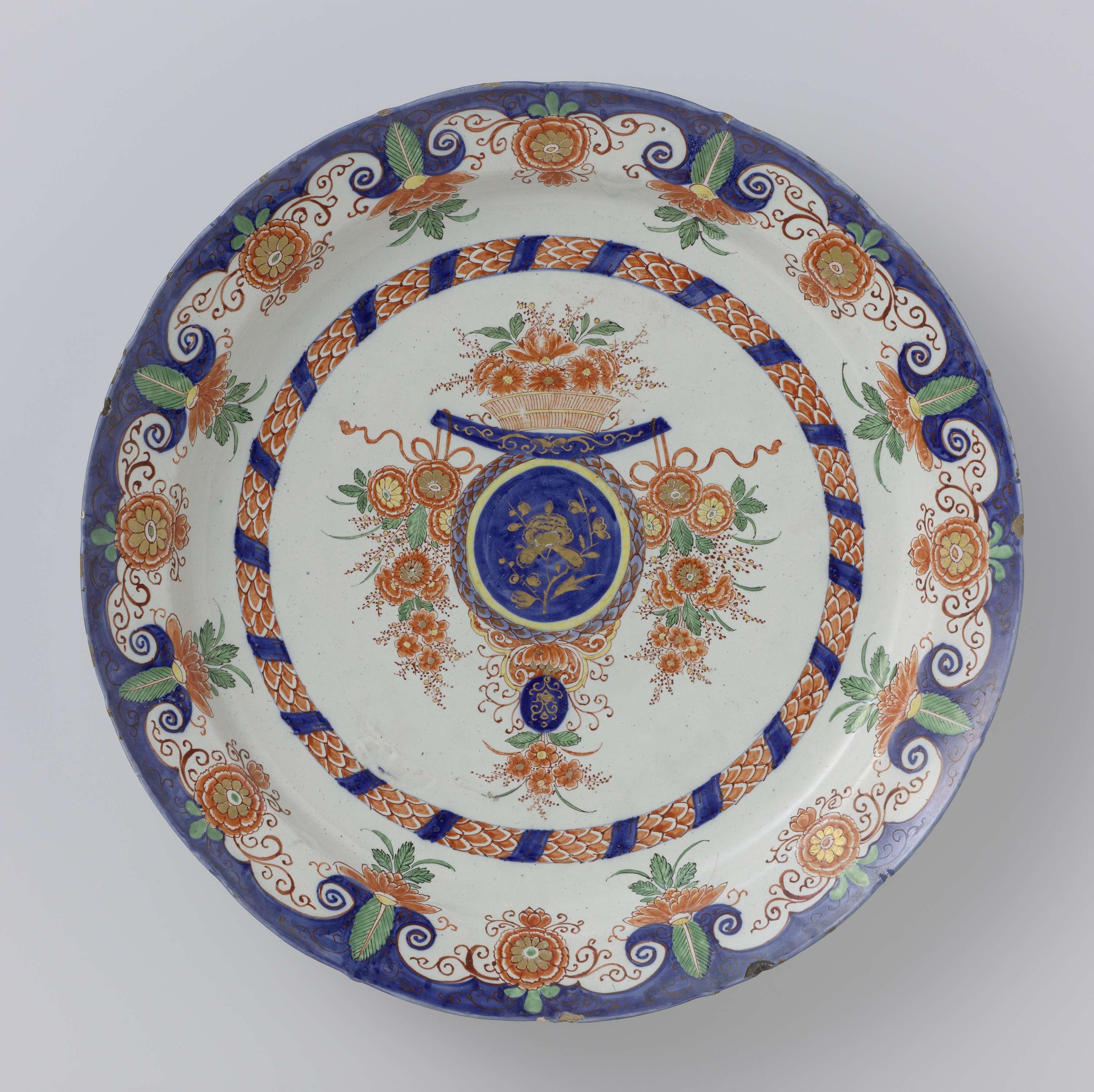 | Nederlands | Schotel van faïence met bloemdecoraties |