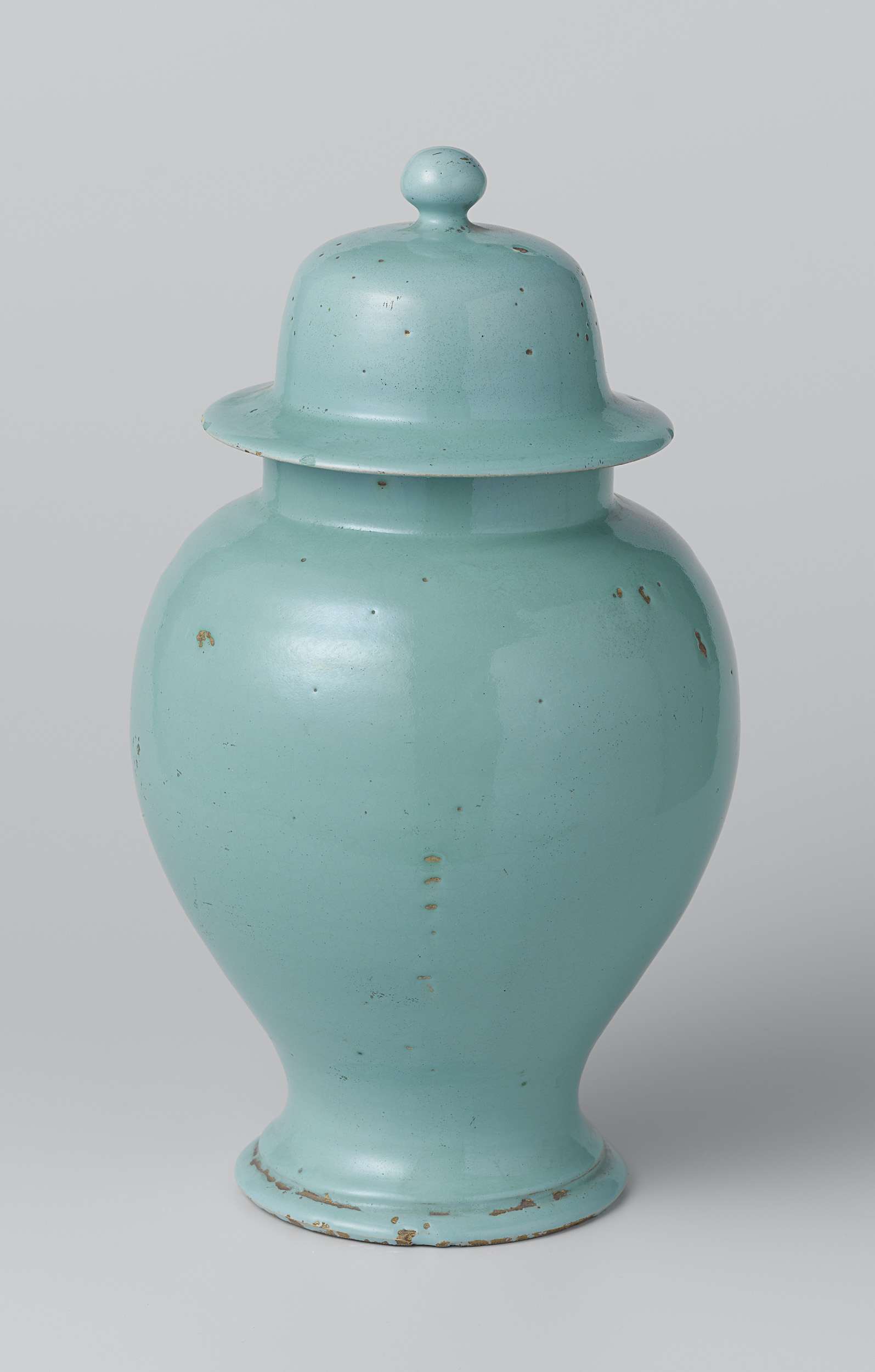 | Nederlands | Dekselpot van faience met blauwgroen fond |