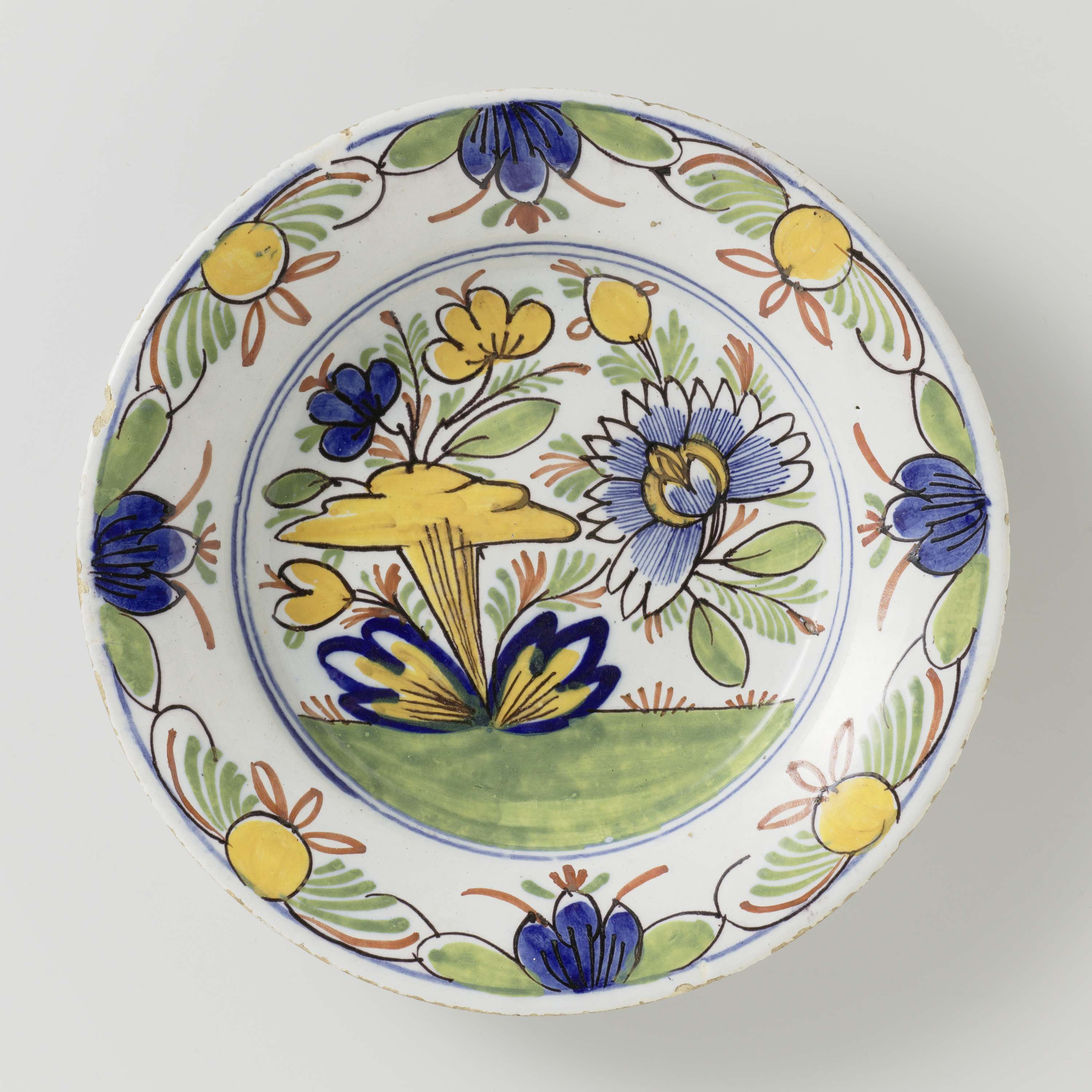 | Nederlands | Bord van veelkleurig beschilderde faience met bloemdecoratie |
