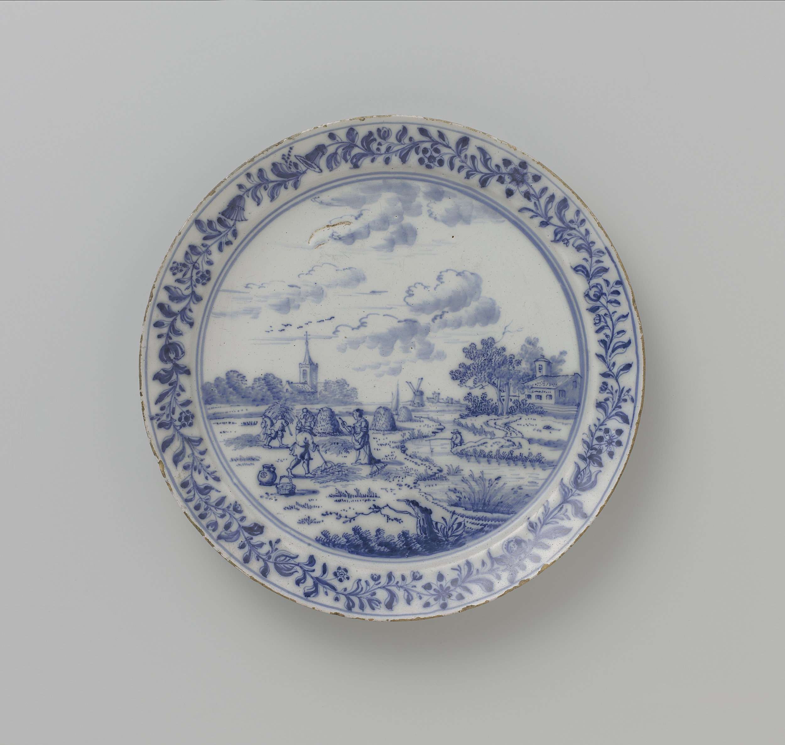 Bord van faience met landschap. (Nederlands)