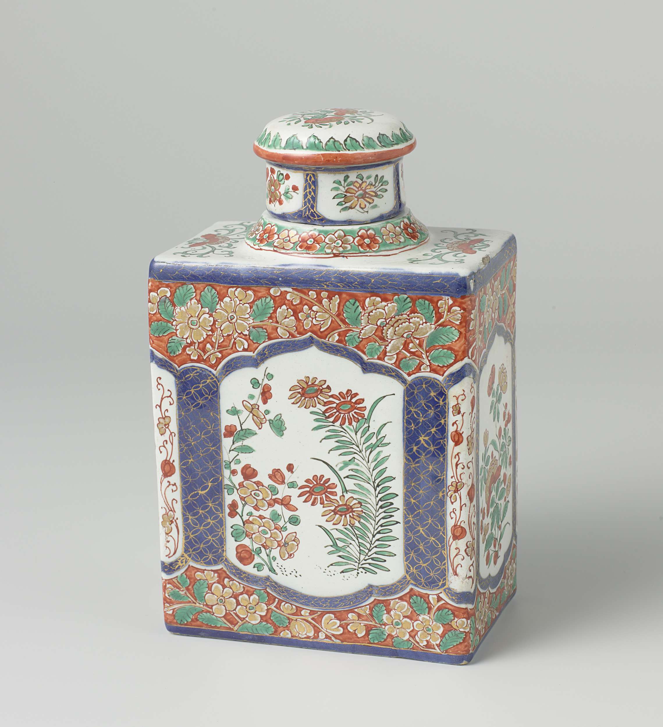 | Nederlands | Theebus van veelkleurig beschilderde faïence |