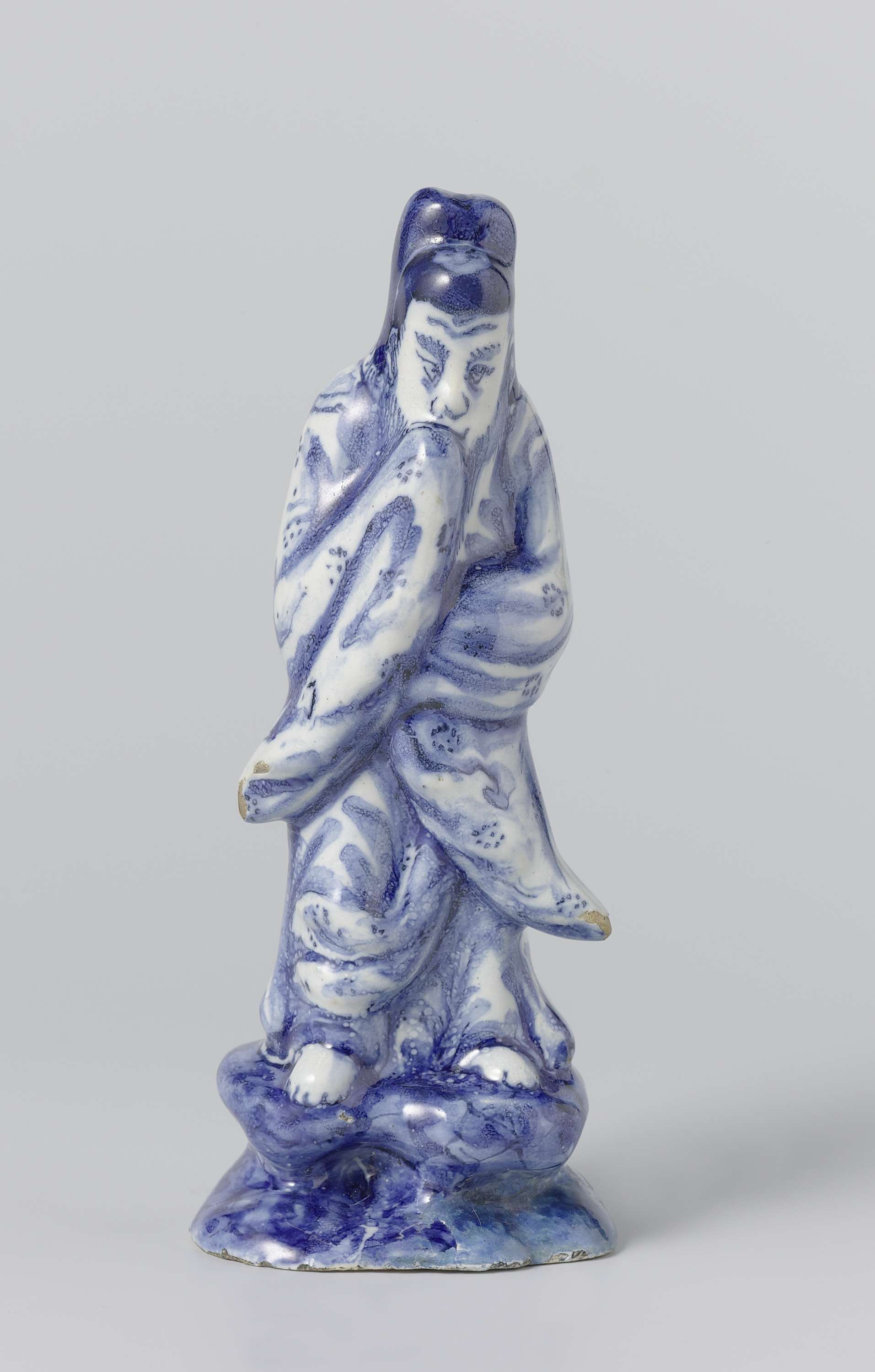 Mannenfiguur van faience. Blauw beschilderd. (Nederlands)