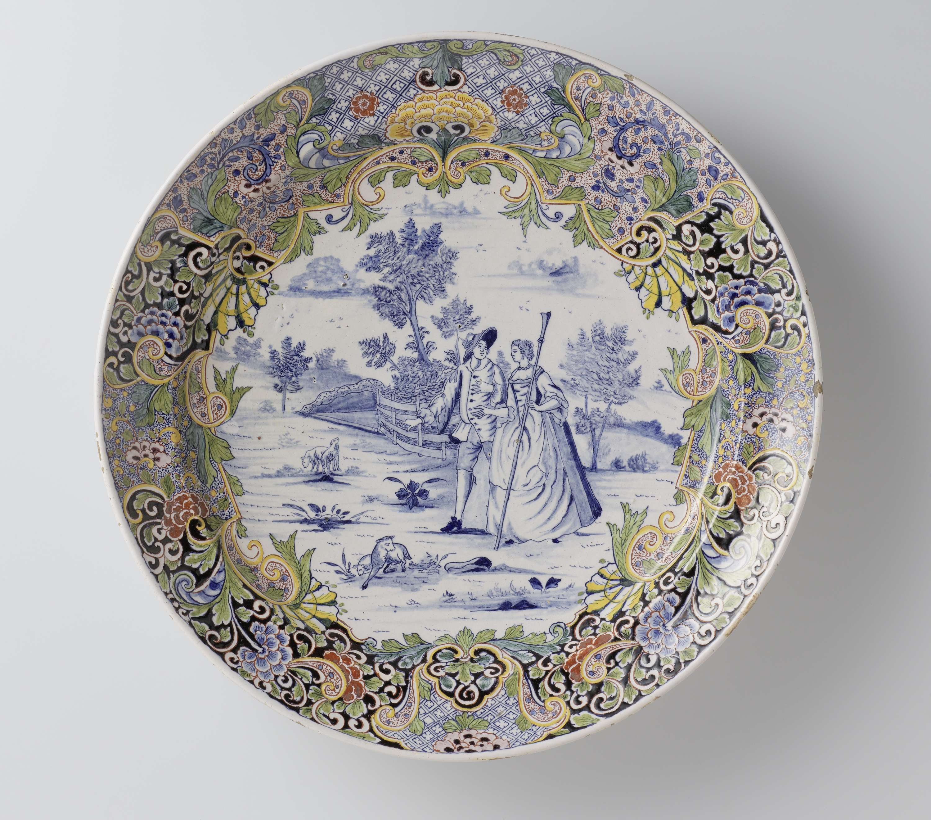 | Nederlands | Schotel, beschilderd met een pastorale scene |