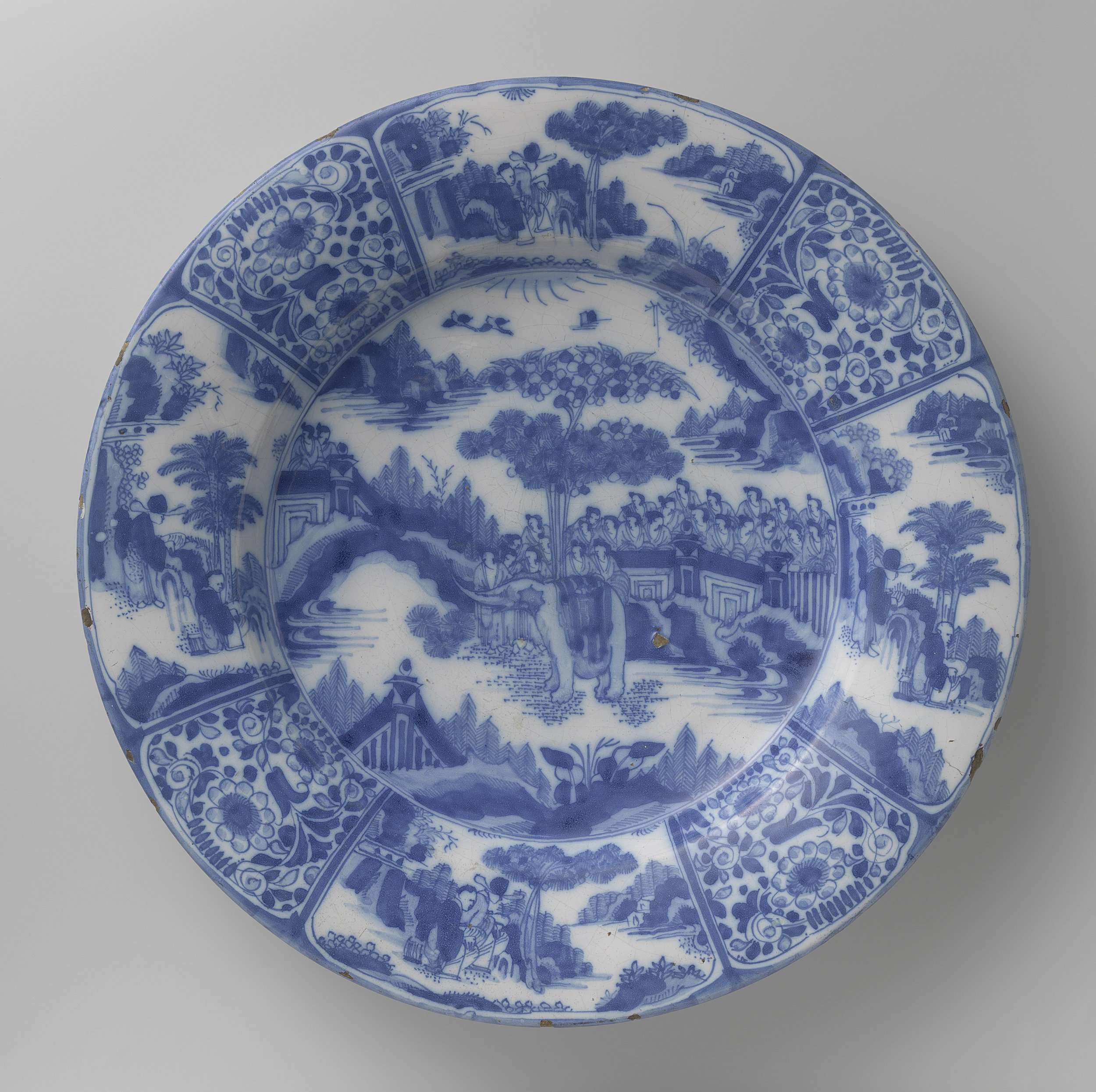 Schotel van faience met een decoratie naar het Chinese porselein uit de overgangsperiode (Nederlands)
