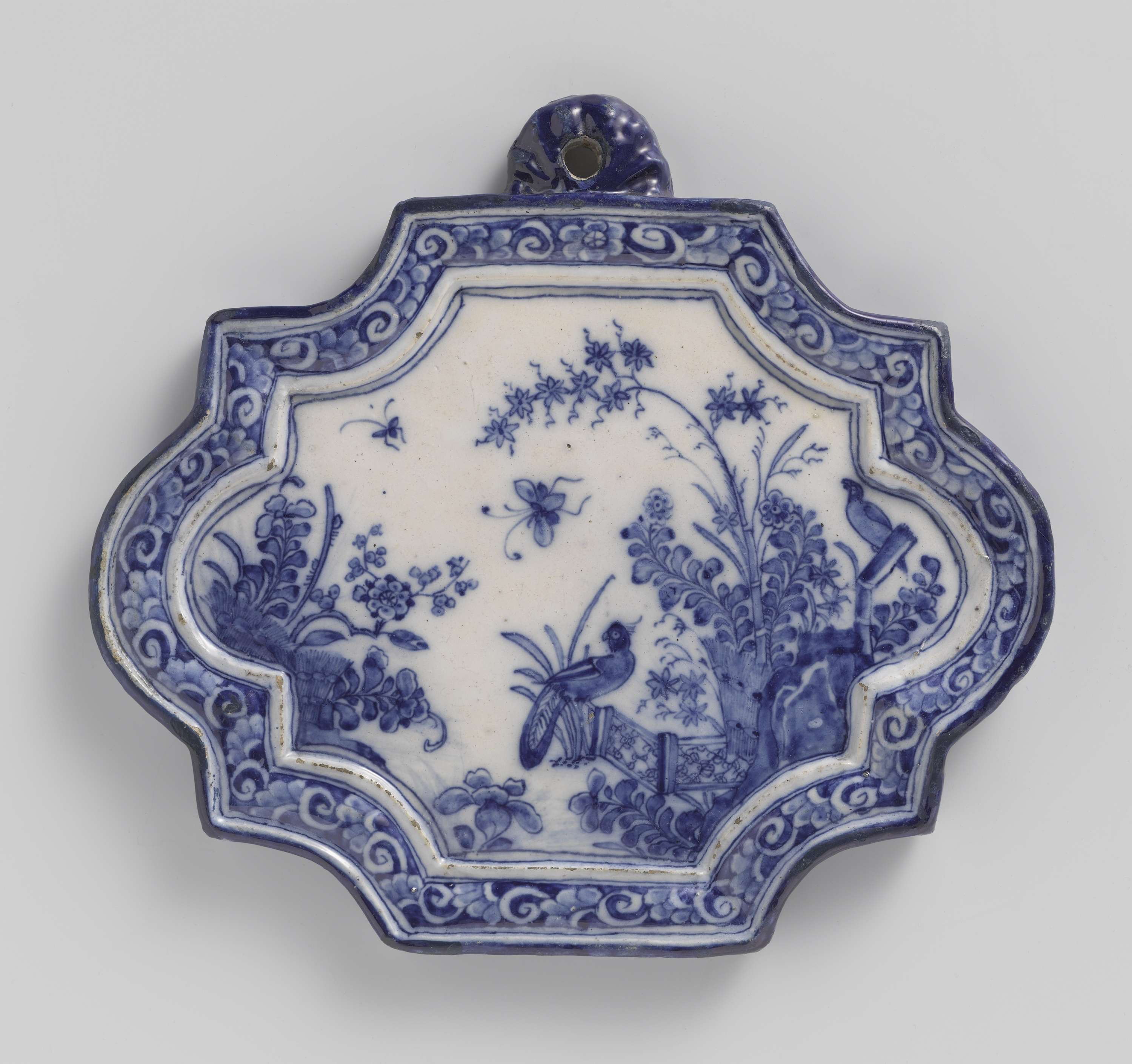 plaat van faience met een chinoiserie decoratie (Nederlands)