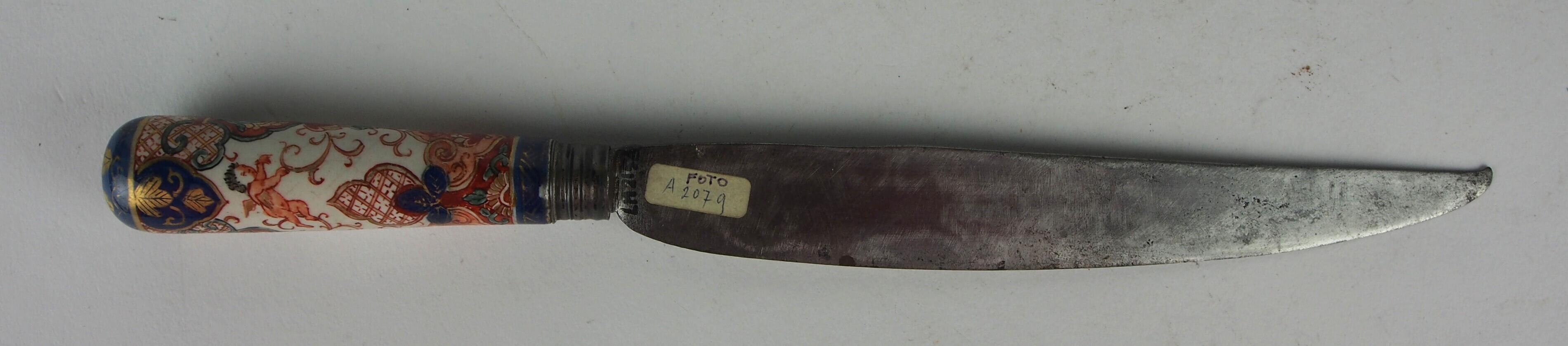 Mes met faience heft polychroom gedecoreerd met goud in Imari-stijl. (Nederlands)