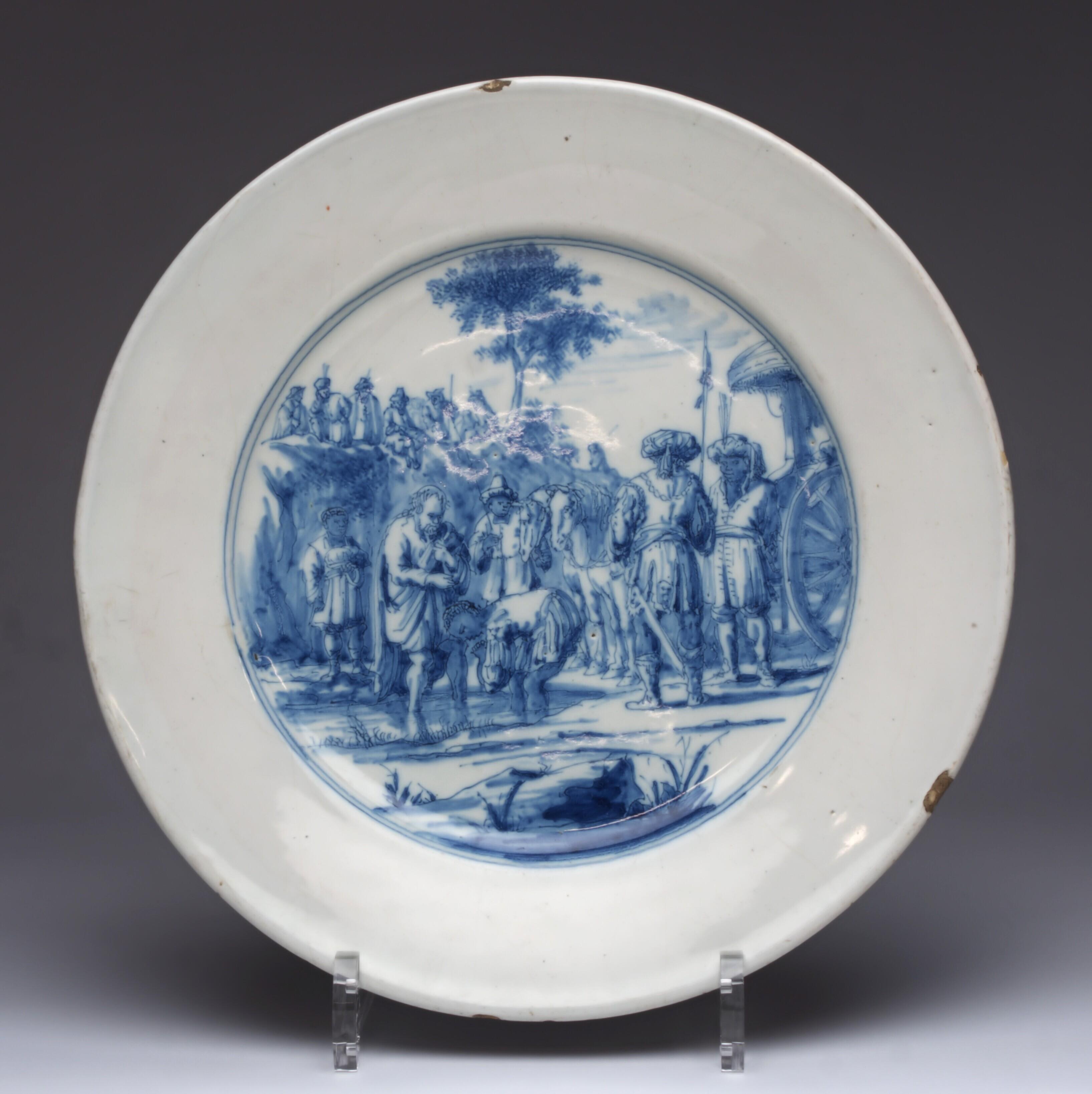 Een Delftse faience bord met een afbeelding van 'de Doop van de Kamerling'.|| | Een Delftse faience bord met een afbeelding van 'de Doop van de Kamerling'.||ca. 1660||tinglazuuraardewerk||PDA 64-A | ||||||||||||||