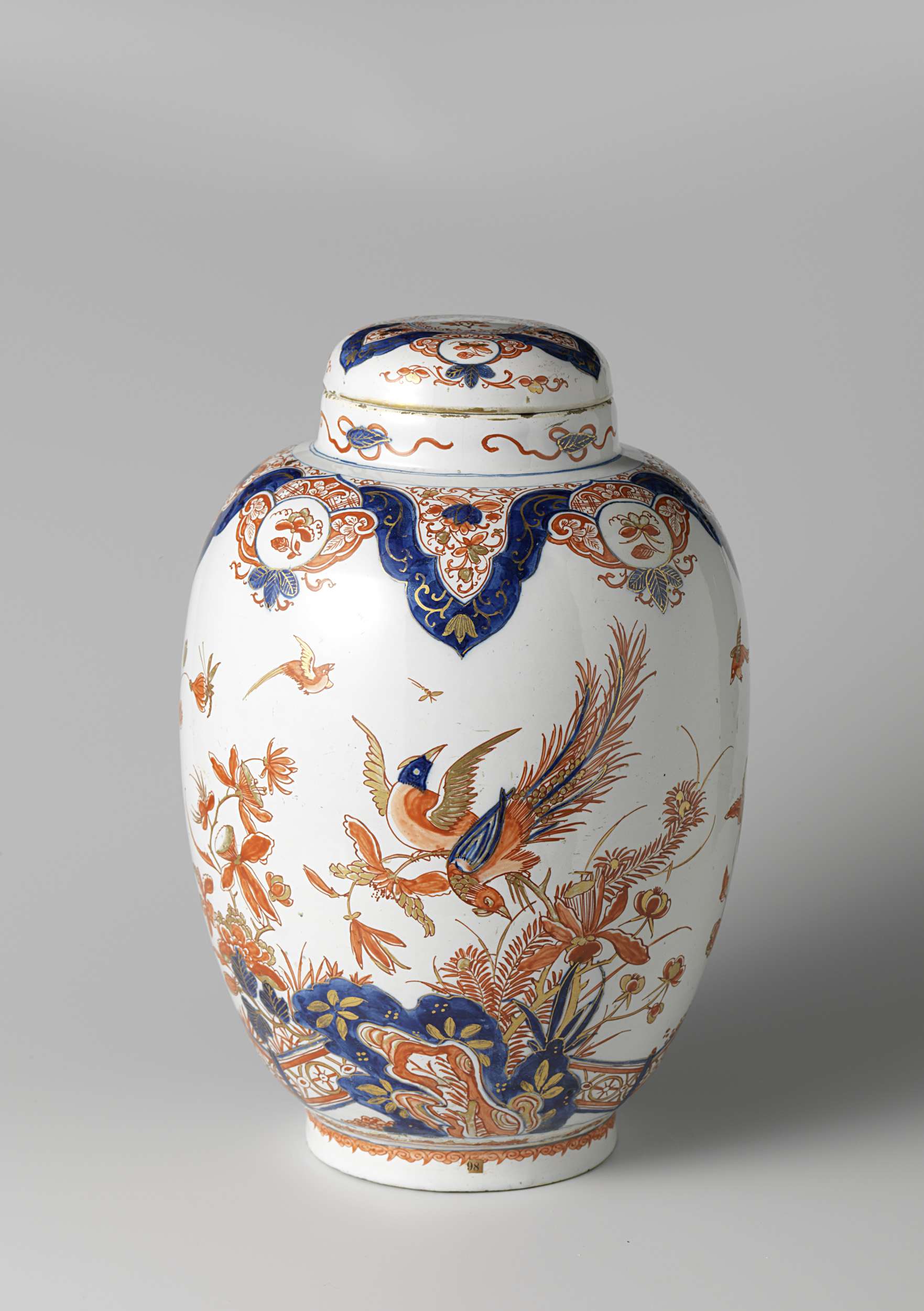 | Nederlands | Pot met deksel van veelkleurig beschilderde faïence |