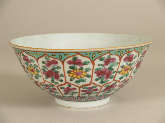 | Nederlands | Kom met decor van overlappende bladmotieven en bloemtakken |
