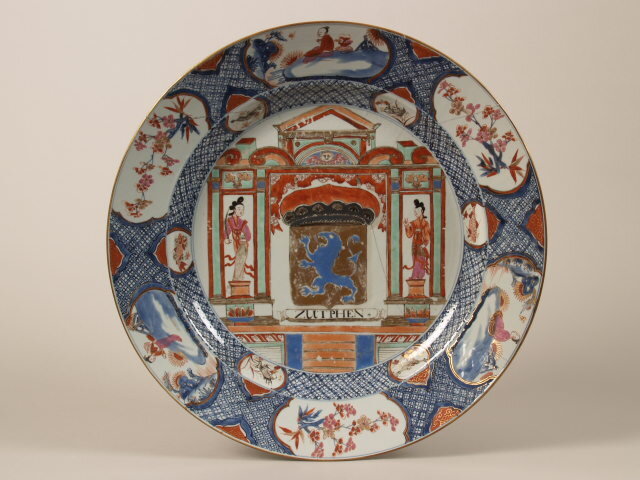 | Nederlands | Schotel met decor van wapen van stad Zutphen, chine de commande, famille rose |