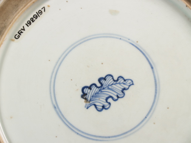 in kobalt onderop: blad in dubbele ring (Nederlands)