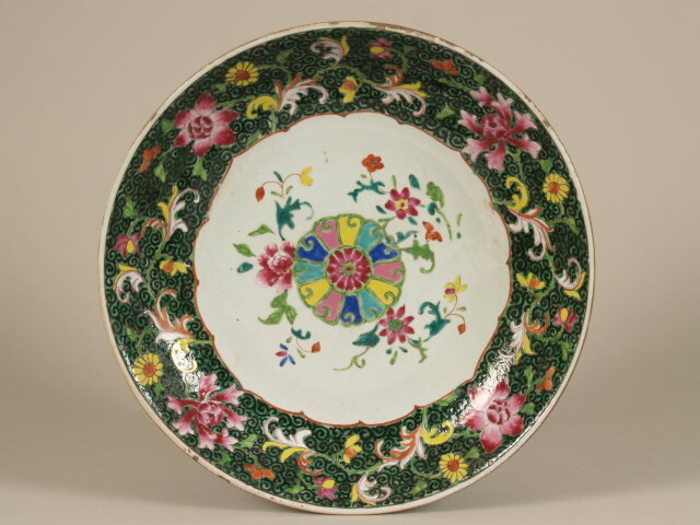 | Nederlands | Schaal met decor van rozet met bloembladeren en takken, famille rose |