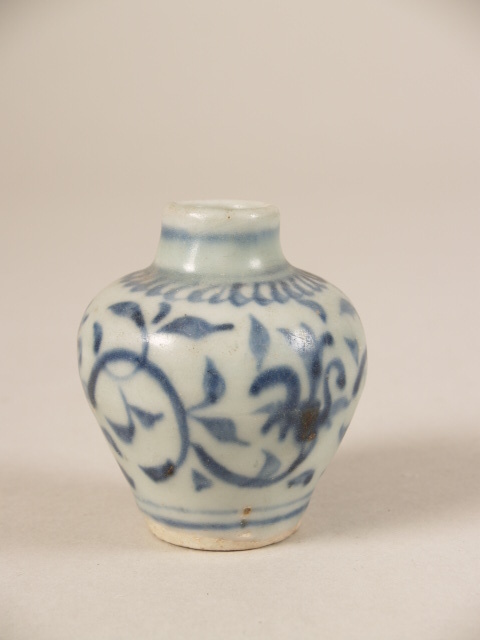 presentatietekst: Potje met decor van bloem- en bladranken (Nederlands)