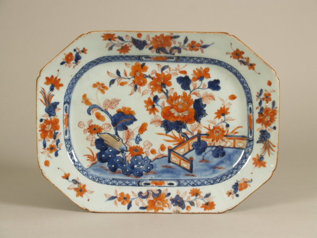 | Nederlands | Schaal met decor van hek en bloeiende planten, imari |