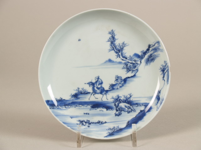 | Nederlands | Bord met decor van landschap met ruiter en lopende dienstknecht |
