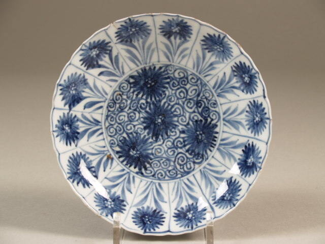 Schaal met decor van vlakken waarin asters (Q26995): verschil tussen versies