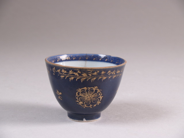| Nederlands | Kop, donkerblauw, met verguld floraal decor |