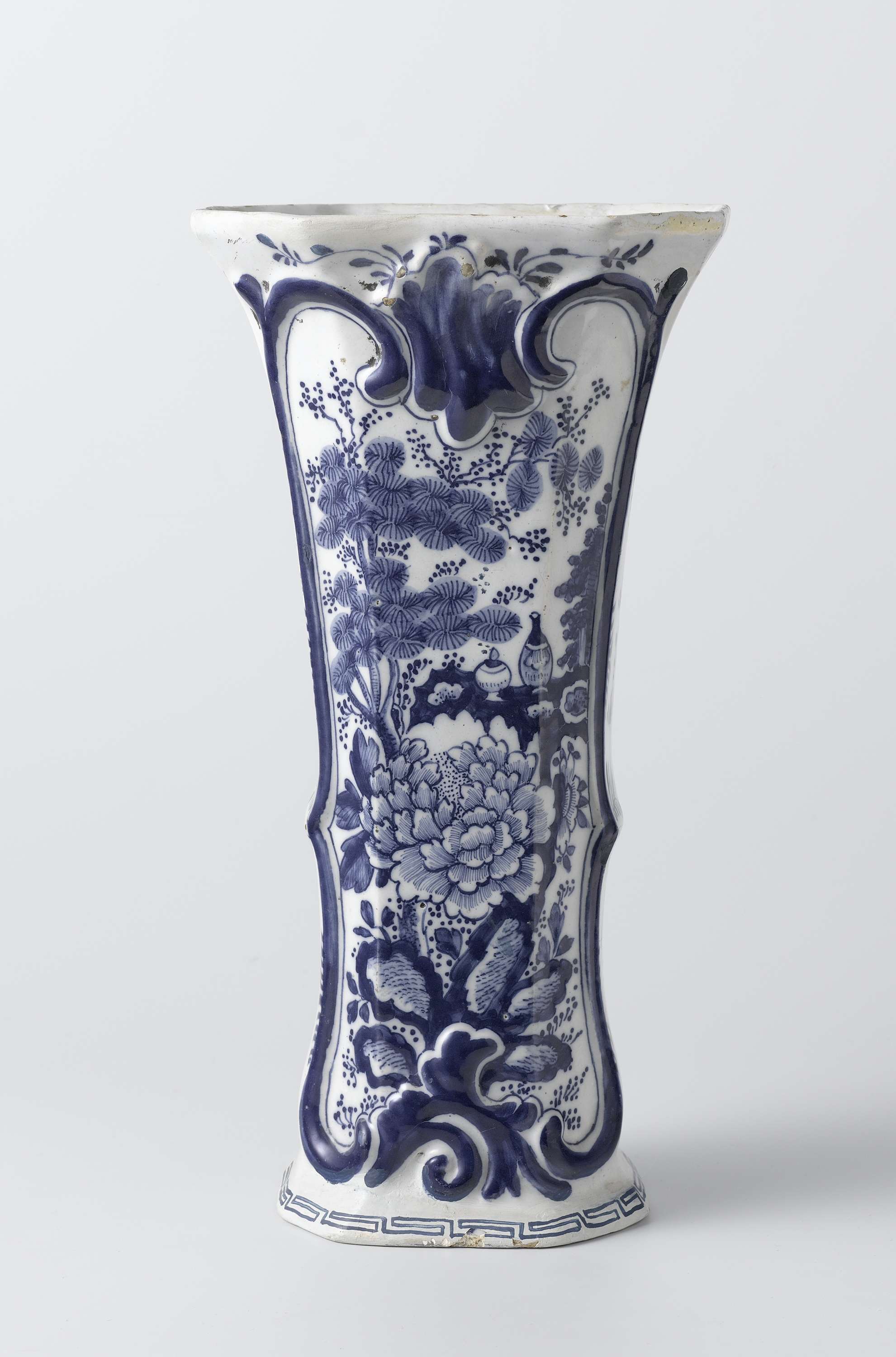 Vaas van faience. Blauw beschilderd met bloemendecoraties. (Nederlands)