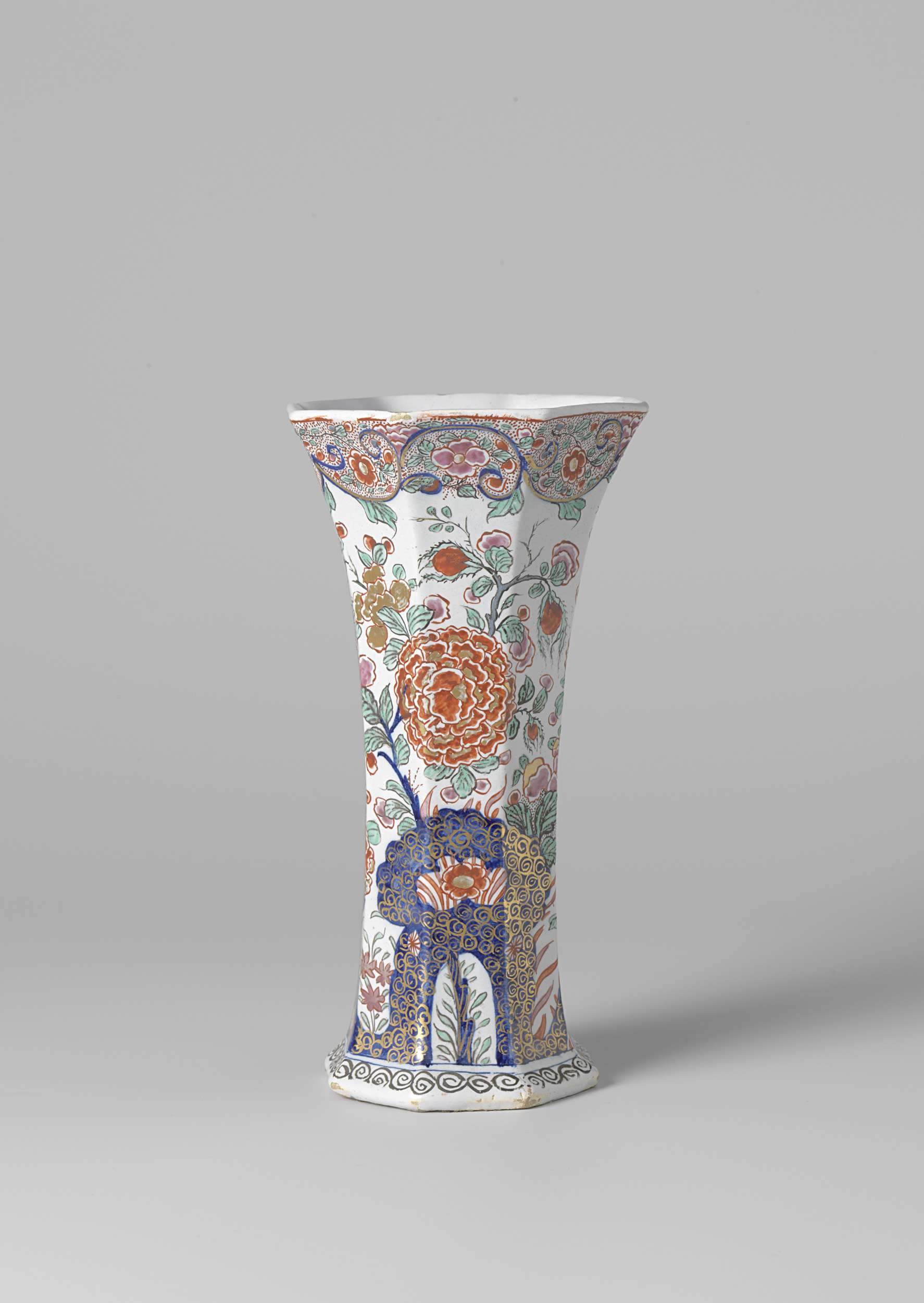 vaas van veelkleurig beschilderd faïence (Nederlands)