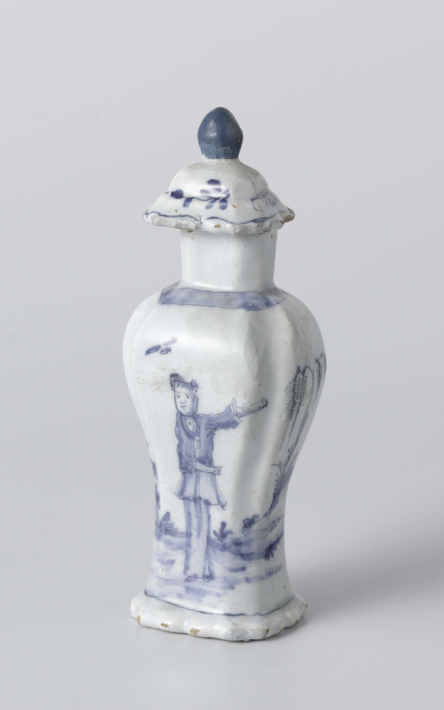 | Nederlands | Dekselpot - Dekselpot van blauw beschilderde faience |