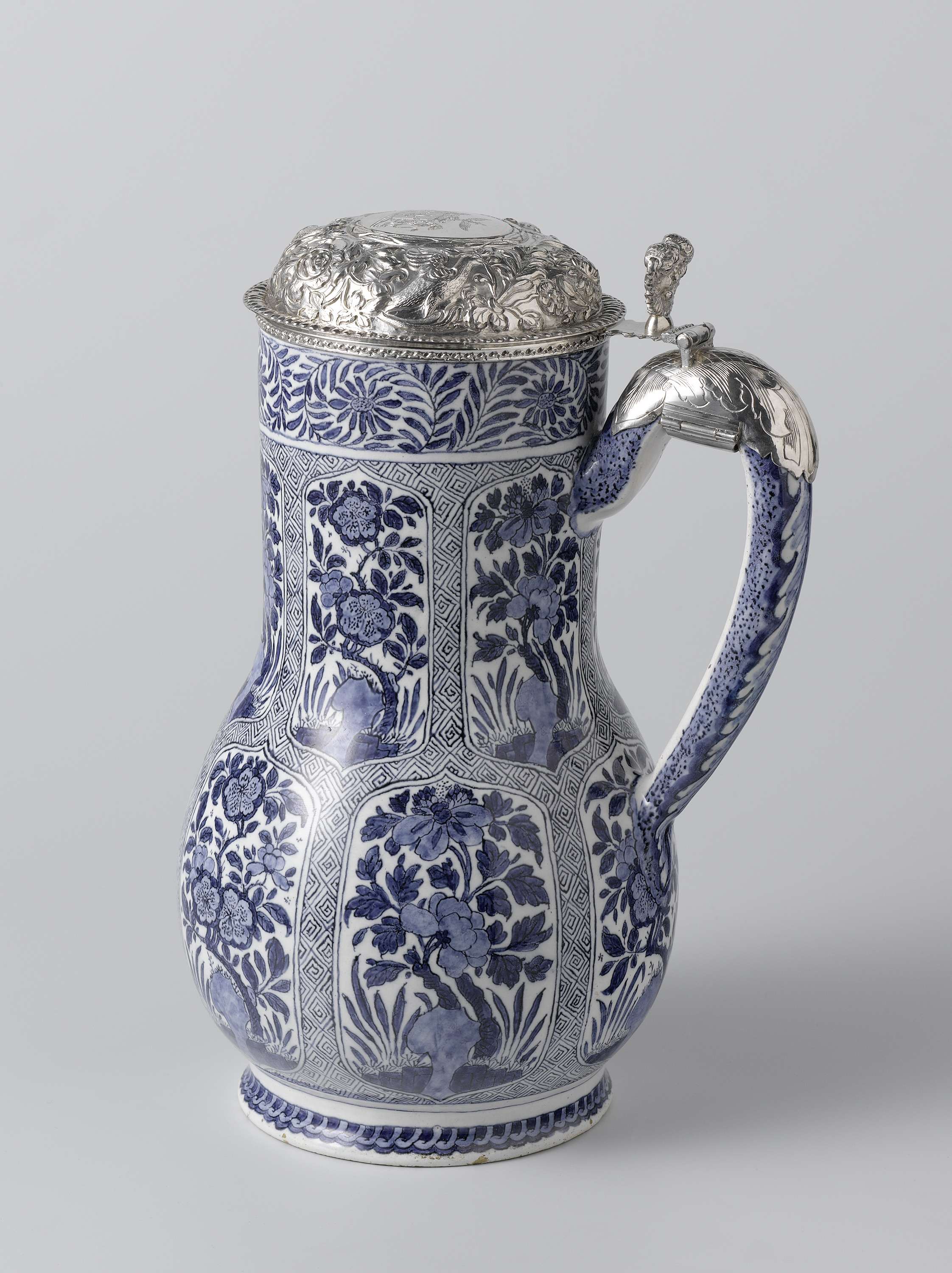 Kan van faience met deksel van zilver (Nederlands)