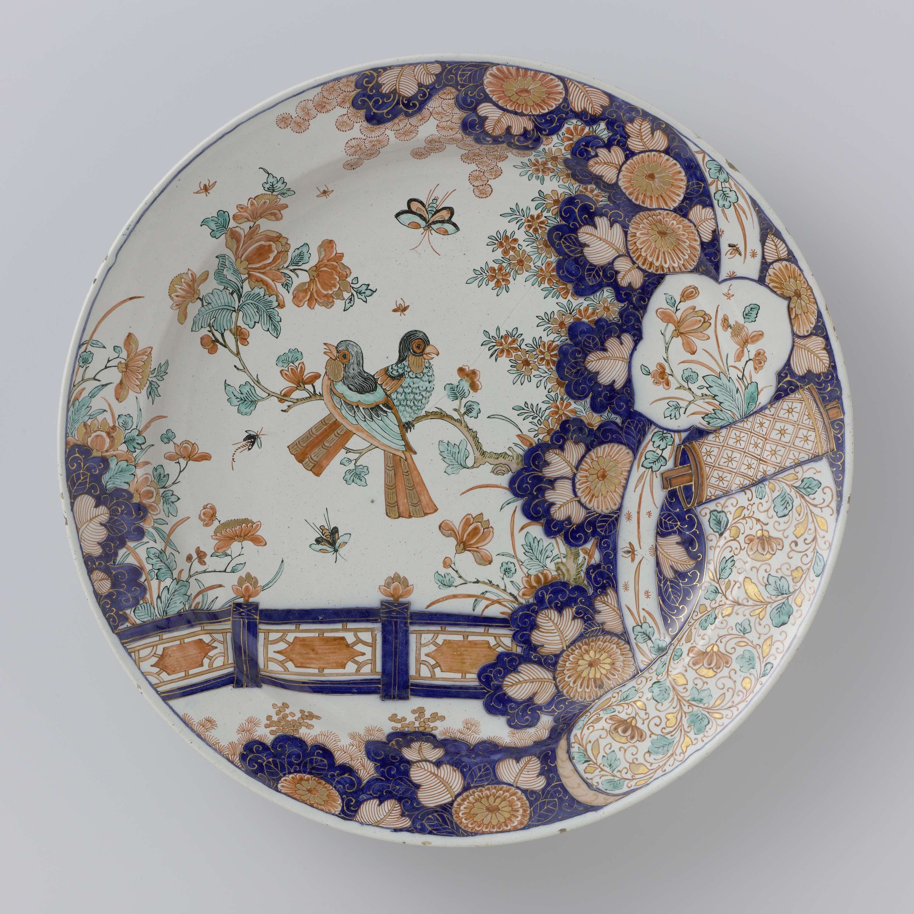 Schotel van faïence. Veelkleurig beschilderd. Gemerkt: A R. (Nederlands)