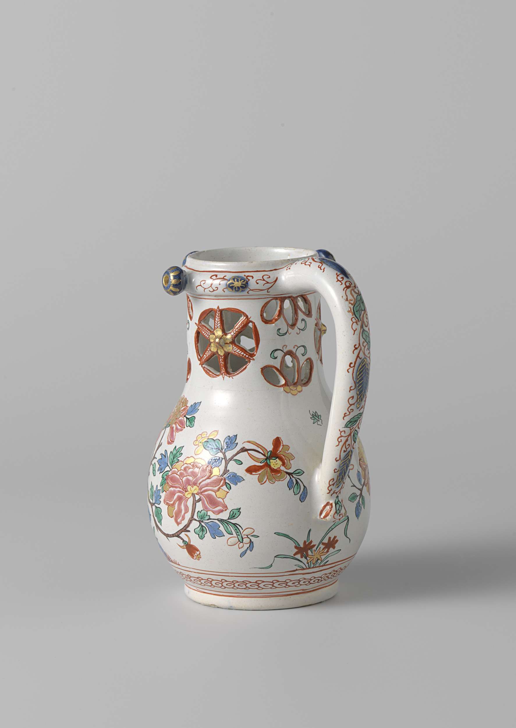 Fopkan veelkleurig beschilderd met vogels en bloemtakken. (Nederlands)