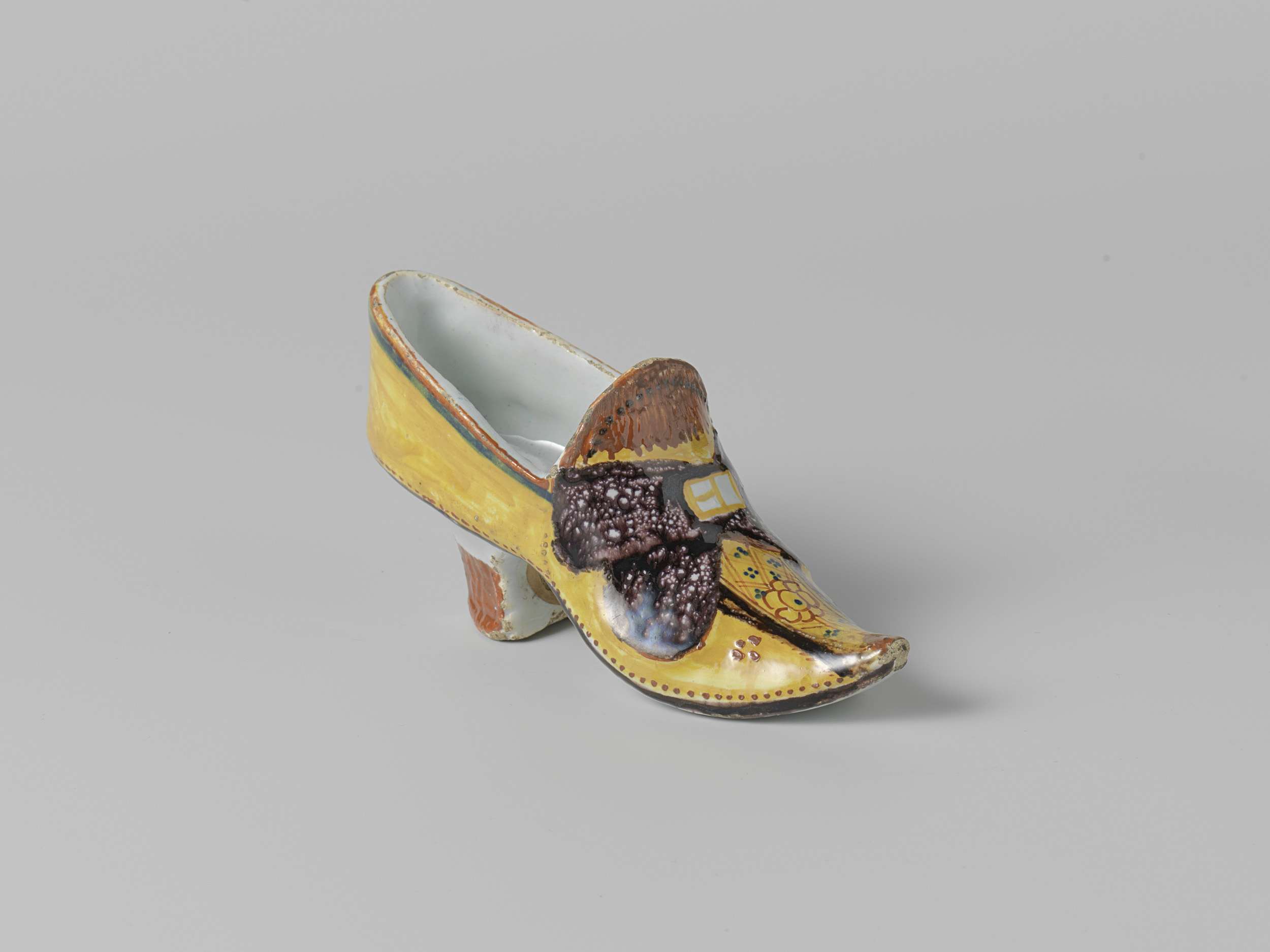 Schoen van faïence. Veelkleurig beschilderd. (Nederlands)
