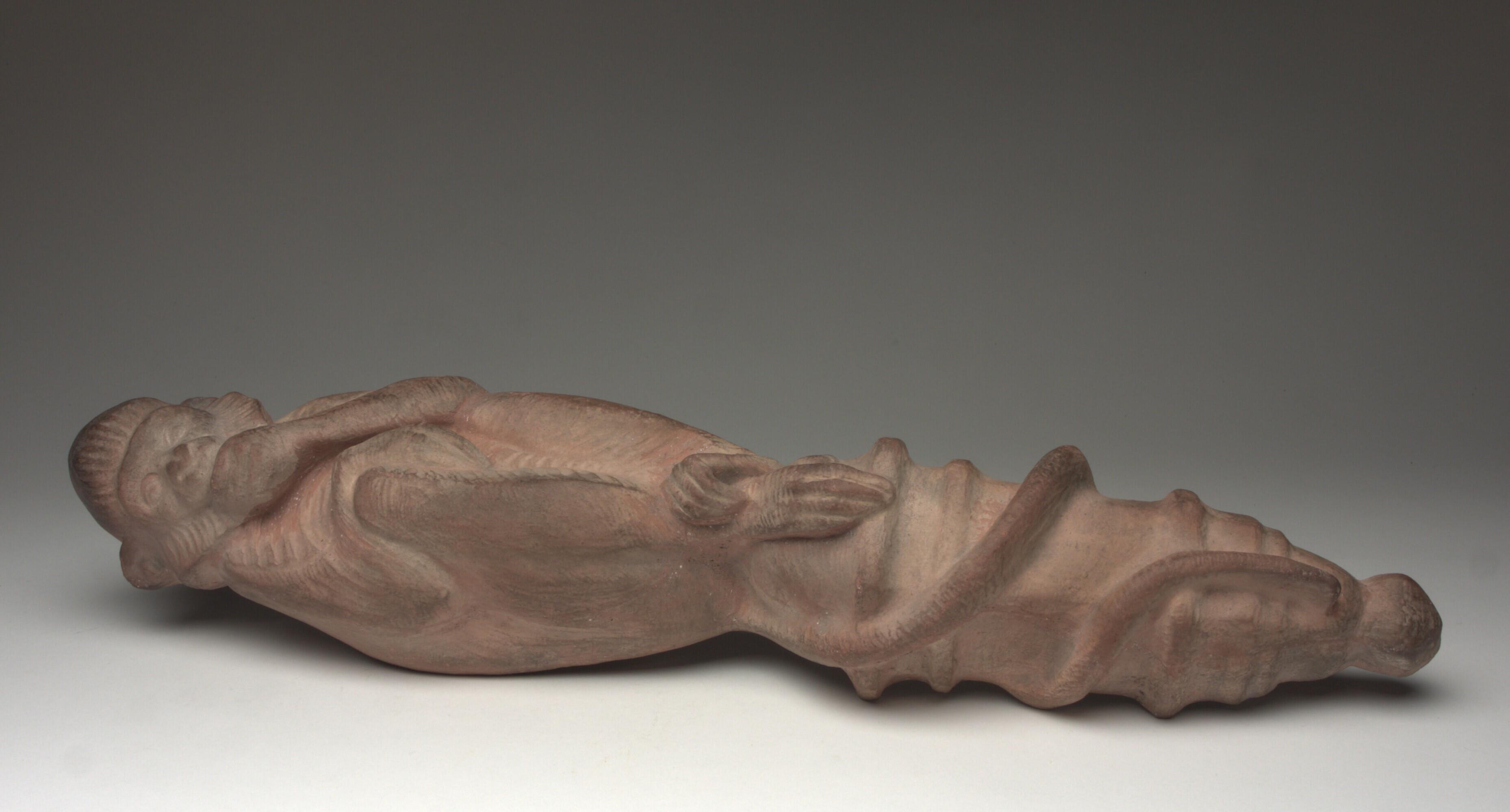zittende aap, staart geslingerd rond voetstuk (Nederlands)
