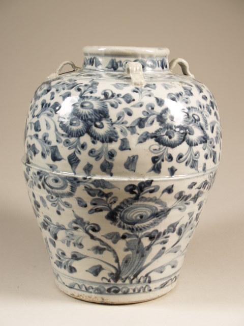 Voorraadpot met 4 handvatten en decor van bloemranken (Nederlands)