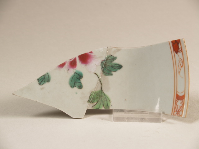 Scherf van schaal met decor van famille rose met bloemen (Q26108)