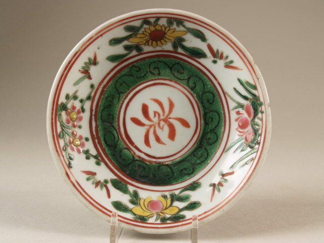 Schaal met decor van dubbele lotus, chrysant en prunus (Nederlands)