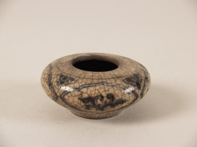 Potje versierd met 4 cartouches waarin een takje (Nederlands)