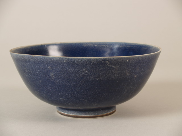Kom, monochroom donkerblauw, met decor van 2 ingekerfde draken (Nederlands)