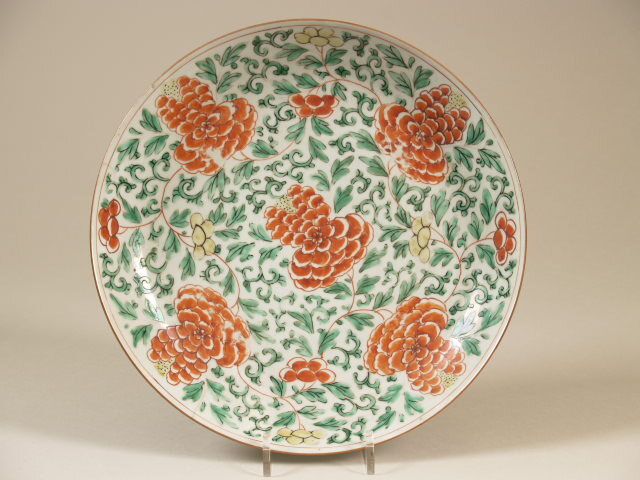 Schaal met polychroom decor van bloemen en bladeren (Nederlands)
