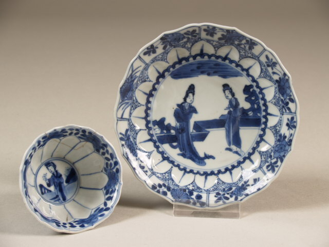 Kop en schotel met decor van lange lijzen op een terras, 1 van 2 (Nederlands)