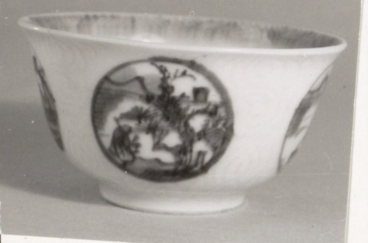 3 kopjes met ingekrast decor en schildering van medaillons, waarin landschappen met figuren, anhua (Nederlands)