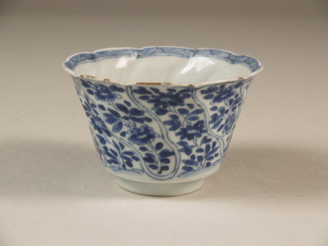| Nederlands | Kop zonder schotel met gegolfde rand en floraal decor in gedraaide vakken |