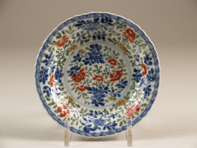Schotel met geschulpte en golvende wand met decor van bloemen (Nederlands)