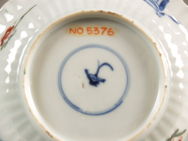 op de bodem in kobaltblauw een insekt (?) in dubbele ring (Nederlands)