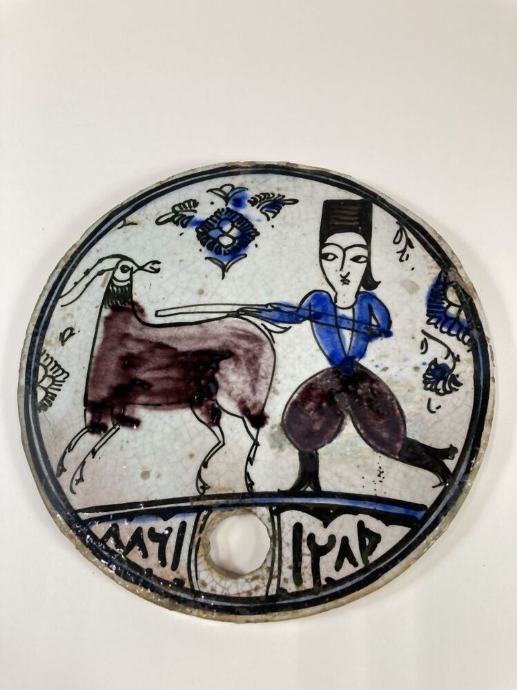 Bijenkorfdeksel met decor van dier (gazelle?) (Q27403)